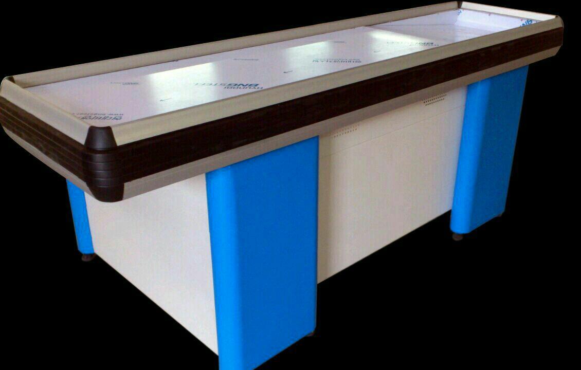 تصویر میز چک اوت فروشگاهی دور آلمینیوم و موتور دار (متحرک)
