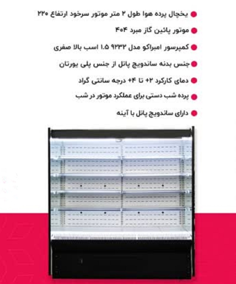 یخچال پرده هوا طول 2 متر موتور سر خود ارتفاع 220 سانتیمتر